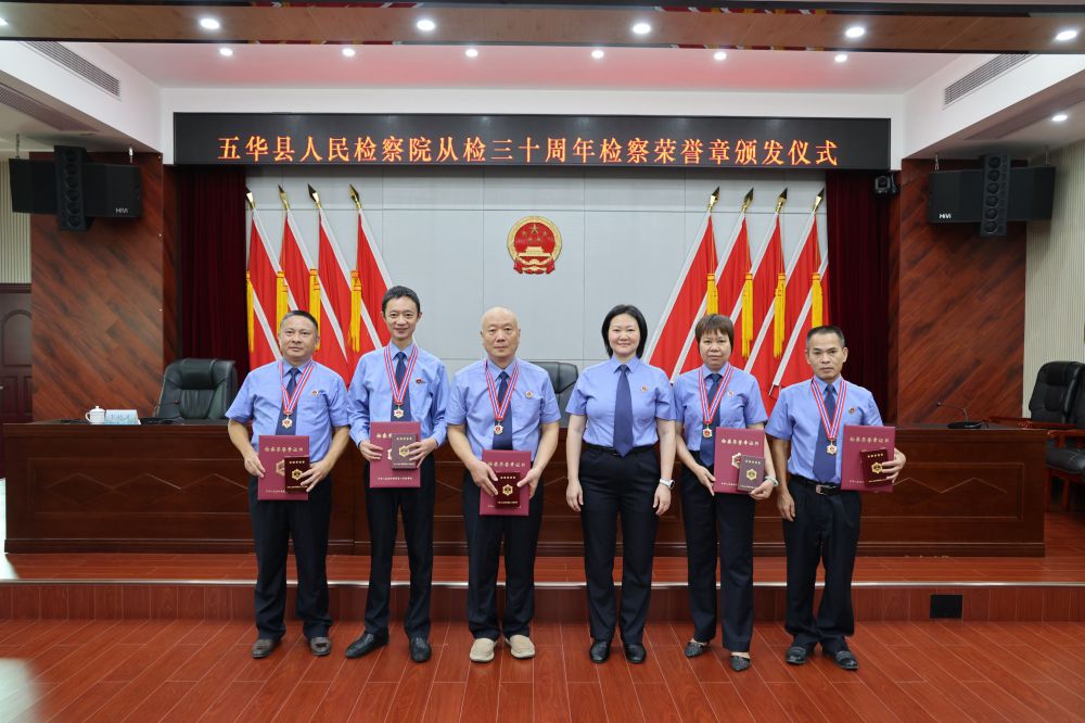 一枚荣誉章,半生检察情。5位同志以30年坚守践行检察使命,荣誉章既是对他们工作成绩的肯定与嘉奖,也是对其他干警的激励与鼓舞。全体检察人员将以他们为榜样,既学习他们深耕业务的专业精神,也传承他们忠诚、敬业、干净、担当的优良品质,在新时代检察工作中,不忘初心、砥砺前行,推动五华检察事业在传承中实现高质量发展。
